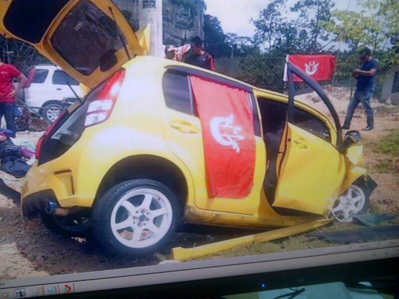 2 penyokong Kelantan cedera, seorang daripadanya parah apabila kereta mereka kemalangan di KM94 Jln Kuala Lipis-Merapoh, 1.30 petang tadi.